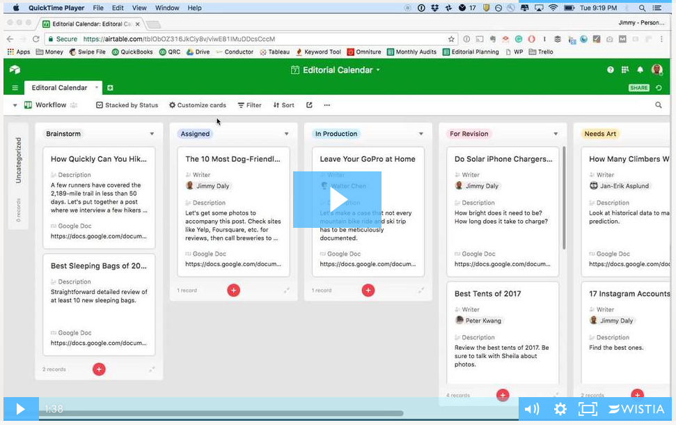 Airtable is the lovechild of Trello and Google Sheets. It's a platform where you can build your own tools. I've been experimenting with it (along with Zapier) to run a high-volume editorial workflow. I even made a few videos to show you how I se