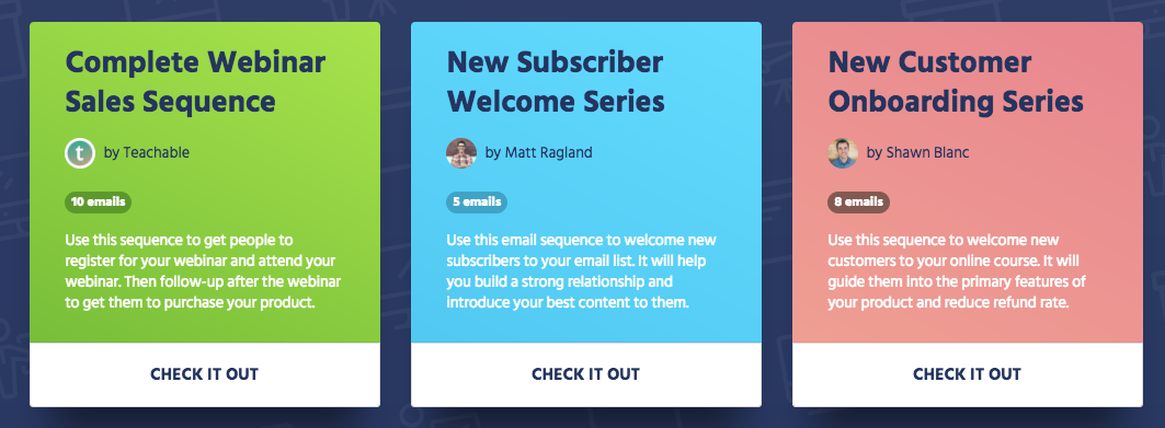 This is a very cool resource from Bryan Harris at Videofruit. You can browse and download a number of pre-written email sequences. (You can't download the HTML, but I've had success customizing free templates like these and these in Sublime.)